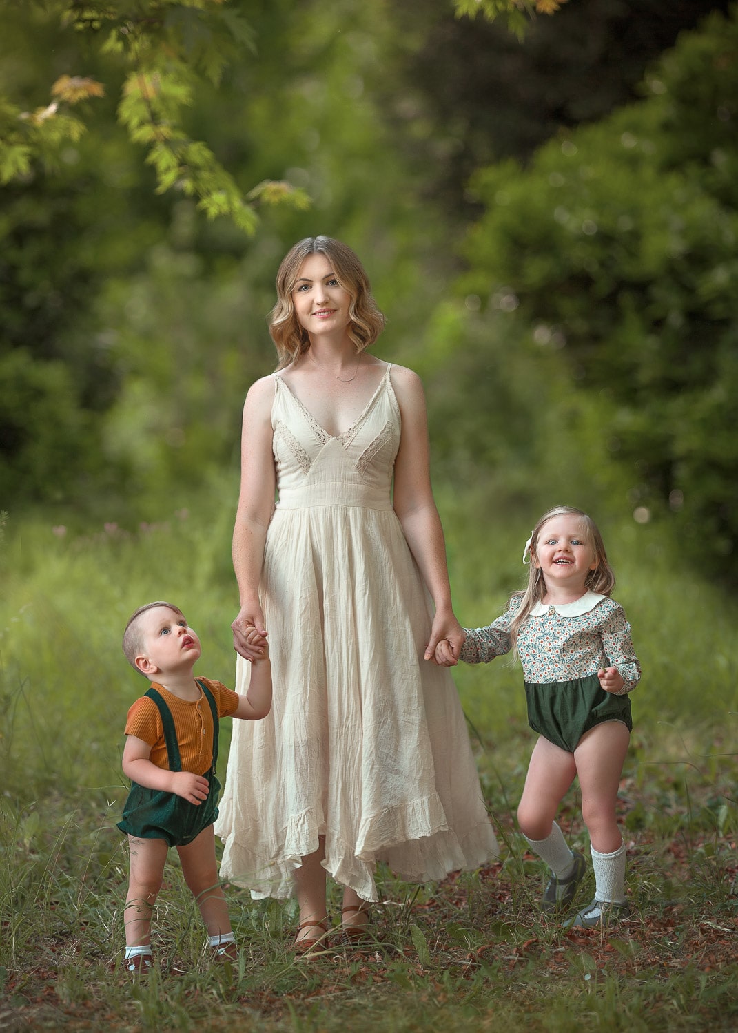 I love capturing the real moments of a big sibling holding his sisters hand while they explore a new outdoor spot or a husband leaning over to kiss his wife while she squeezes her kids into a tight embrace.