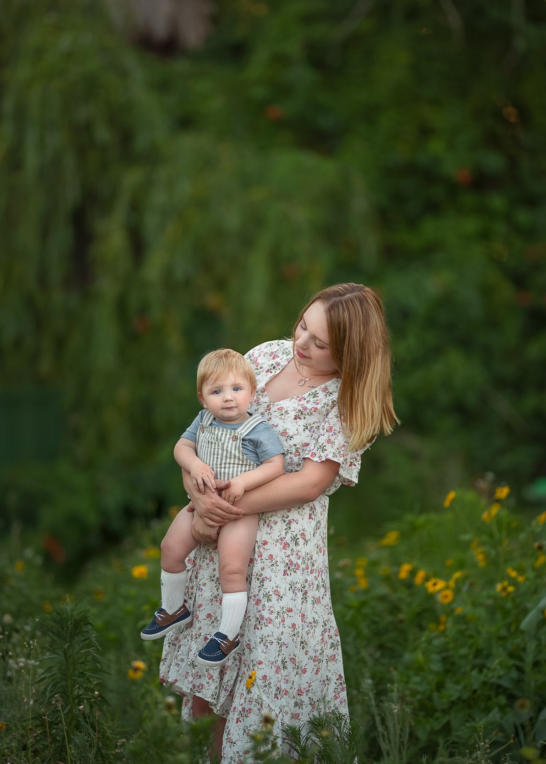 Tips for hiring a family photographer. 2 year old toddler and 7 month old baby with parents during outdoor family photoshoot.